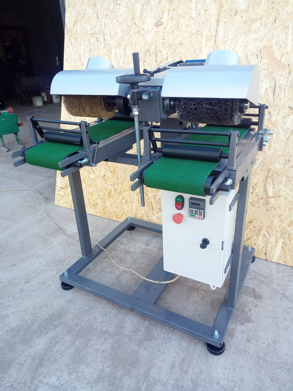 – 2 kartáče jsou umístěny na obou stranách stroje. Po opracování na kovovém kartáči je obrobek podáván k abralonovému kartáči;