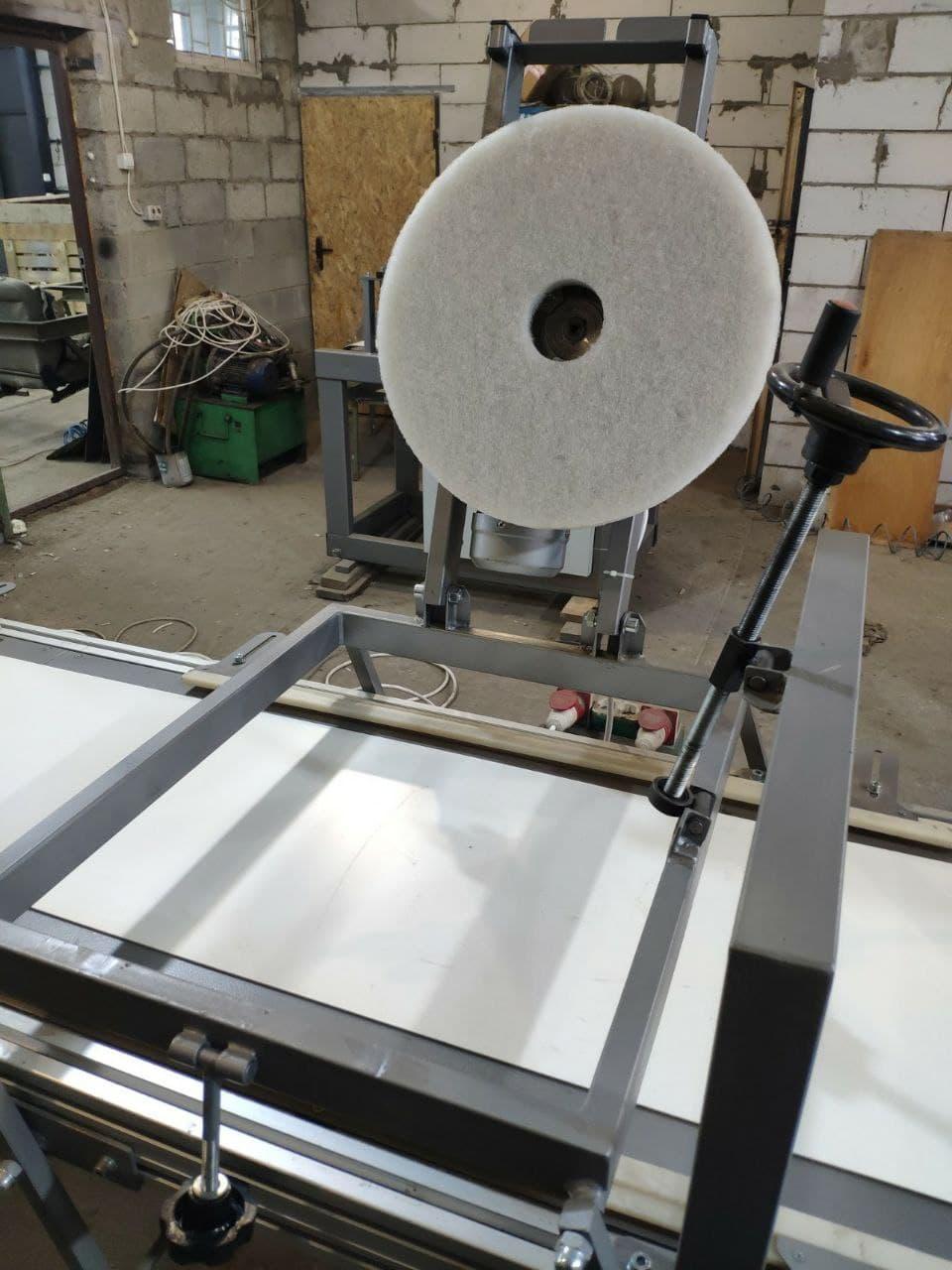 Functionally, it consists of a base with a conveyor feed of the workpiece, 3 height-adjustable units with cylindrical brushes. The 1st and 2nd brushes are located at an angle of 200
